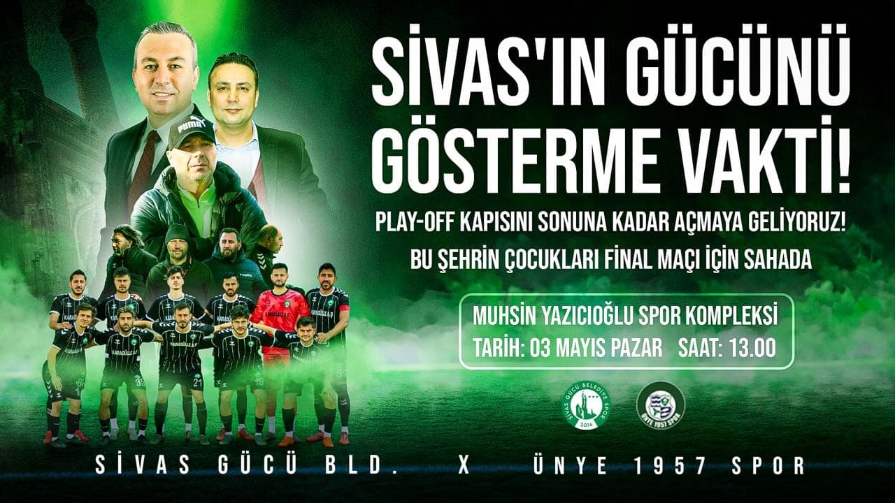 <p>Sivas futbolunda heyecan dorukta. Sivas Gücü Belediyespor, play-off hedefi doğrultusunda kritik bir karşılaşmaya çıkıyor. Yeşil-beyazlı ekip, sezonun en önemli maçlarından birinde Ünye 1957 Spor ile karşı karşıya gelecek.</p><p>Play-off kapısını sonuna kadar açmak isteyen Sivas Gücü Belediyespor, 3 Mayıs Pazar günü saat 13.00’te Muhsin Yazıcıoğlu Spor Kompleksi’nde taraftarı önünde sahaya çıkacak. Teknik heyet ve futbolcular, bu zorlu mücadeleden galibiyetle ayrılarak hedeflerine bir adım daha yaklaşmayı amaçlıyor.</p><p>Kulüp cephesinde morallerin yüksek olduğu gözlenirken, yeşil-beyazlı camia da bu önemli randevuya kenetlenmiş durumda. Yönetim, teknik ekip ve futbolcular, Sivaslı sporseverleri tribünleri doldurmaya ve takımlarına 90 dakika boyunca destek olmaya davet ediyor.</p><p>“Bu şehrin çocukları final maçı için sahada” mesajıyla hazırlıklarını sürdüren Sivas Gücü Belediyespor, taraftar desteğiyle sahadan galip ayrılarak play-off yolunda güçlü bir adım atmak istiyor.</p>
